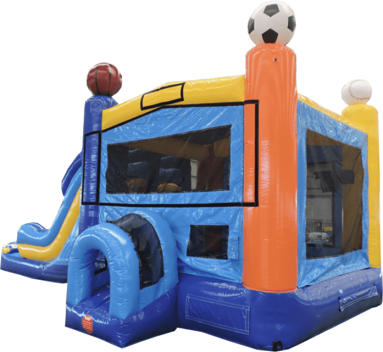 a versatile all-in-one rental featuring an inflatable that combines a spacious bounce area, an integrated slide, and obstacle or climb elements to keep kids entertained for hours. Designed for backyard parties, school events, and community gatherings, this setup maximizes fun in a compact footprint—guests can jump, race up a climb, and whoosh down a slide without moving between separate attractions. Built with durable, weather-resistant vinyl and reinforced seams, it’s made to handle active play while providing safe entry and exit points, mesh sidewalls for visibility and ventilation, and cushioned landing zones to reduce bumps and tumbles. The package typically includes blower(s) for continuous inflation, tethering straps for secure anchoring, and a repair kit and tie-down stakes—everything needed for quick setup and confident operation. Ideal for mixed-age groups, the combo balances high-energy sliding with the open, social space of a bounce area, making it a crowd-pleasing centerpiece that keeps party flow smooth and cleanup simple.